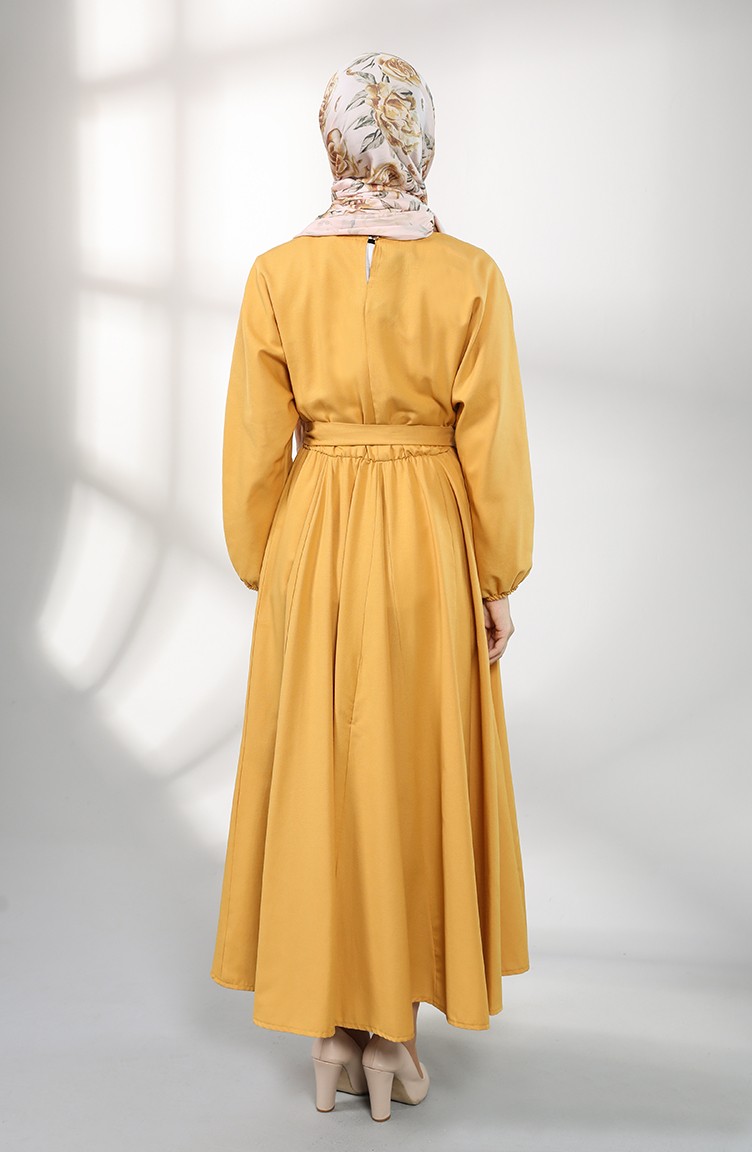 kolu lastikli kusakli elbise 5177 01 hardal sefamerve