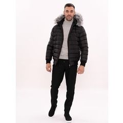 kol ucu lastikli model olan siyah renkli sisme mont yeni sezon modelleri arasinda yer almaktadir boydan fermuarli model olan sisme mont kapuso moda triko mont