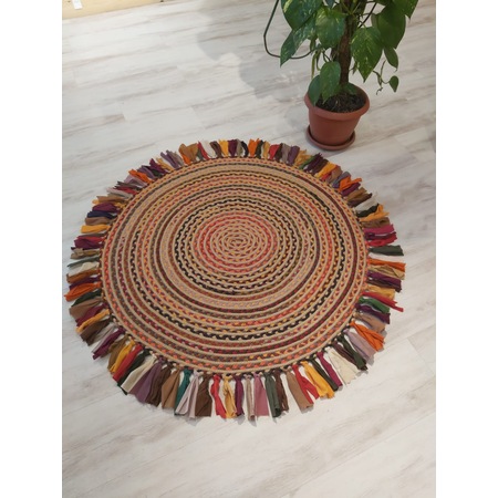 paspascim renkli yuvarlak jut hali orgu hasir kilim