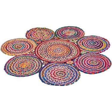cok renkli milda jut hali kilim 01 90x90 hasir el orgusu yuvarlak modelleri ve fiyati dekopasaj
